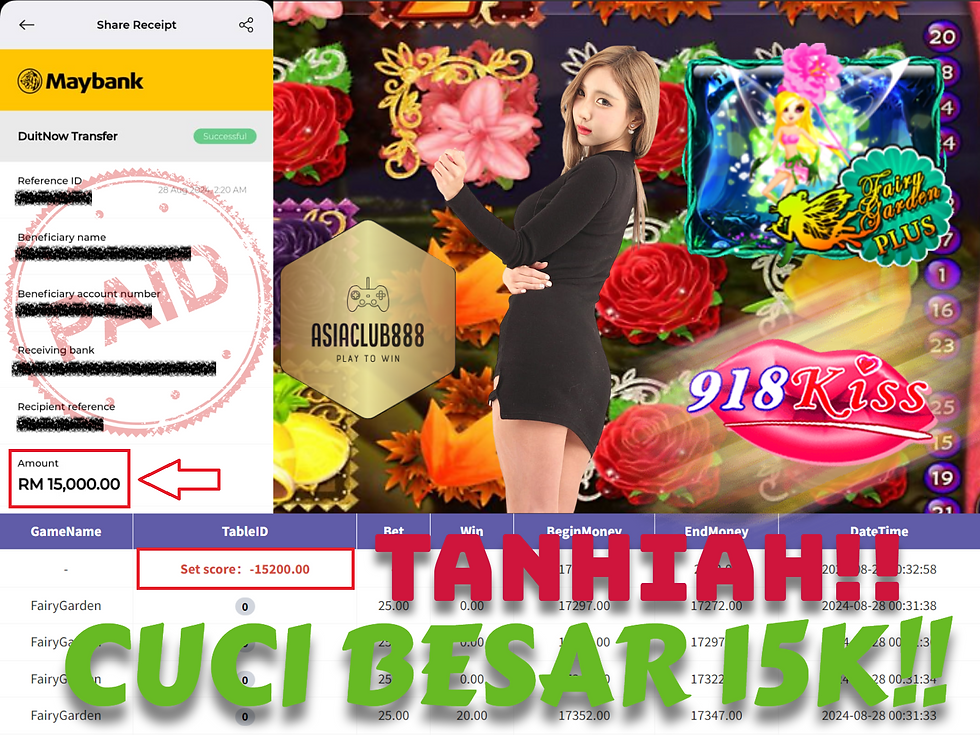 KISS FAIRYGARDEN CUCI BESAR BESAR RM15000!!!! TAHNIAH CUCI BESAR BESAR. Terima kasih kerana selalu support kami di sini AsiaClub88. TAHNIAH boleh cuci sebanyak RM15000.00 🤭 Harap member member lain kami juga akan kuat cuci😍Banyak ONG ONG!!